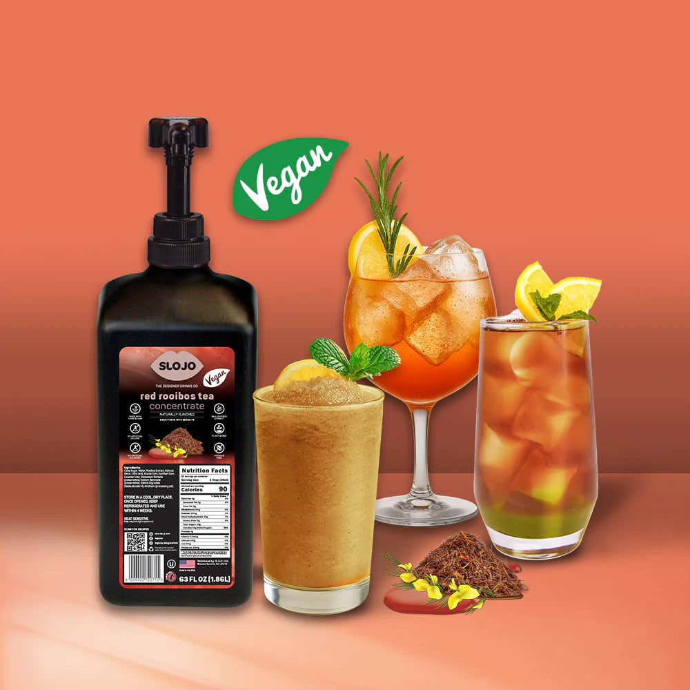 An authentic tasting Rooibos Tea concentrate made with real rooibos extract and natural rooibos aroma. Our Rooibos Tea Concentrate pairs very well with various SloJo products allowing you to create your own unique beverage experience.